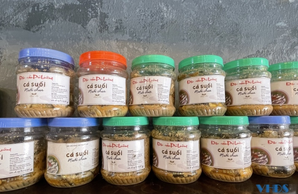 Món đặc sản độc đáo của Pù Luông với hương vị chua thanh, mặn đậm đà, được chế biến từ những con cá suối tươi ngon đánh bắt tại địa phương. Cá suối muối chua được đóng gói sạch sẽ, tiện lợi, là món quà lưu niệm lý tưởng dành cho du khách.