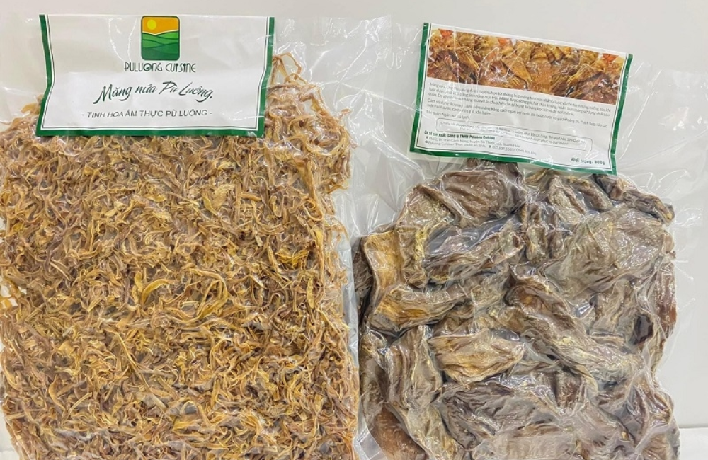 Măng nứa Pù Luông được sấy khô, đóng gói cẩn thận, giữ nguyên hương vị và dưỡng chất. Măng nứa thường được dùng để nấu canh, xào, kho, góp phần tạo nên những món ăn đặc sản hấp dẫn của Pù Luông.